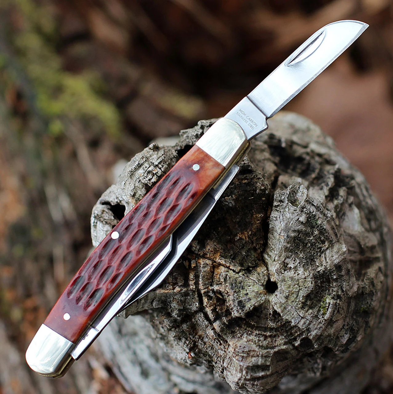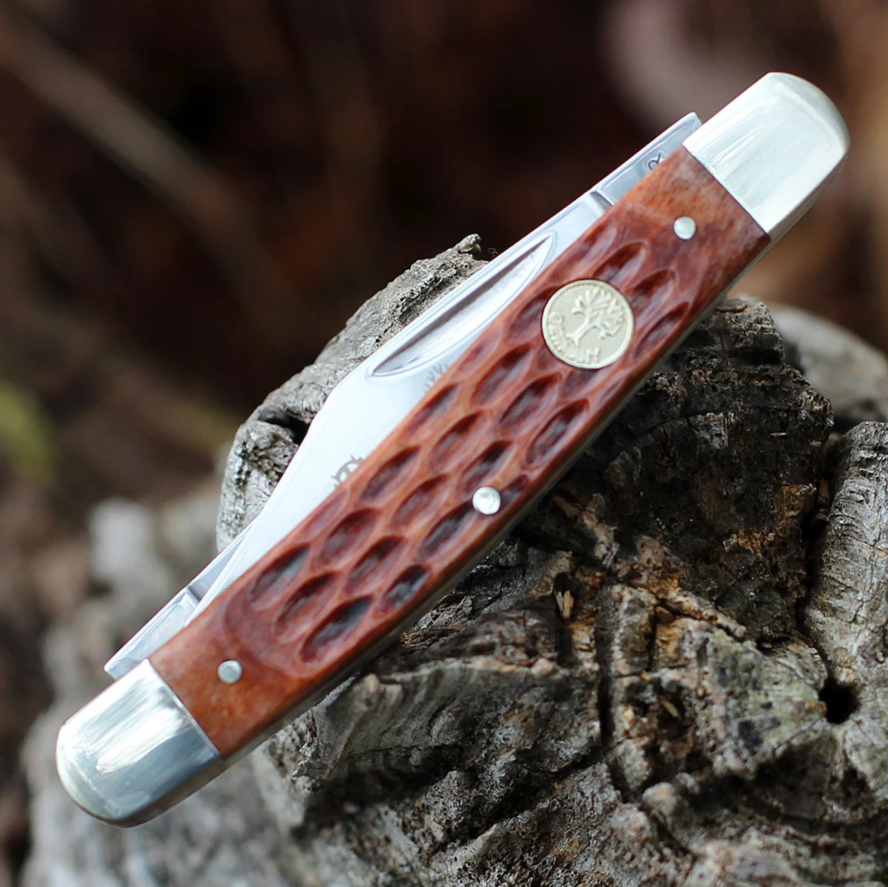 This new series of traditional pocket knives offers all the best components, featuring bone scales, nickel silver bolsters, brass linings and high carbon stainless steel blades. For those who don’t mind using two hands.